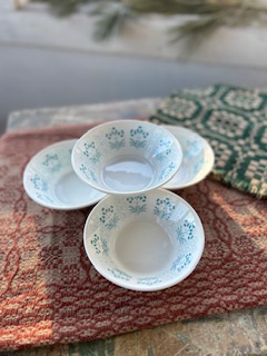 Here is a quad set of Syralite cafe bowls in pristine conditon. These bowls were manufactured right here in the USA for Syracuse in the 1960’s. Known for their durability and lightweight, this set features a delicate floral motif. $25